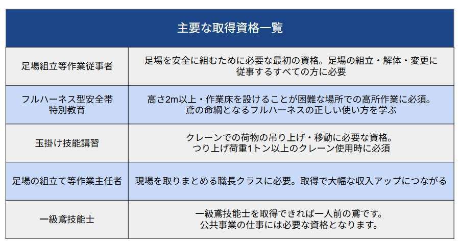 ・鳶職に必要な資格と取得サポート制度